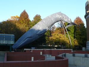 余談です: 上野に行くと必ずこのシロナガスクジラの彫刻(?)の前を通ります。これを見るたびに、