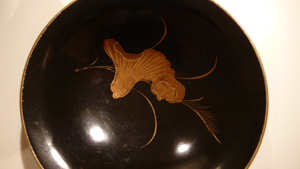 暗い店内で可愛い塗りの椀、4つあって信じられないような値段だったので、おうちに連れて帰りました。