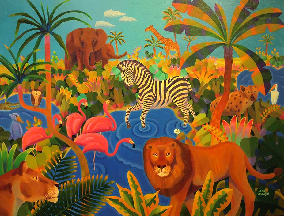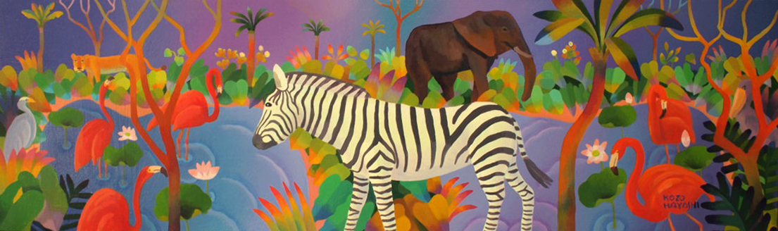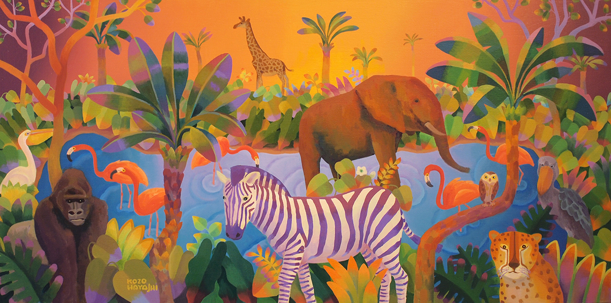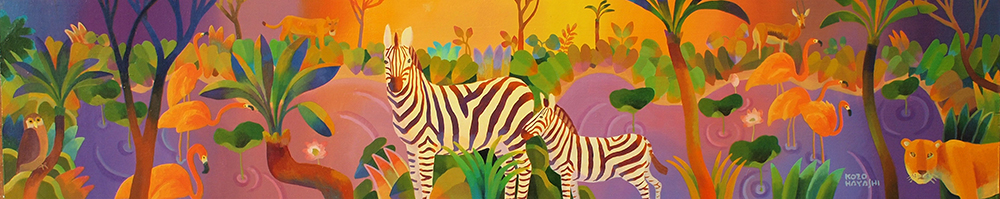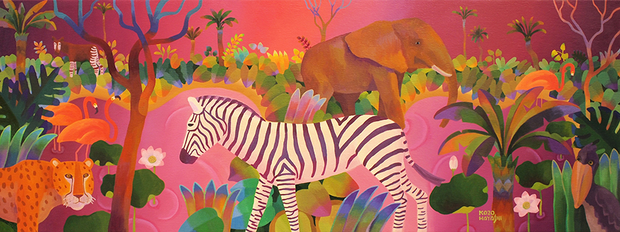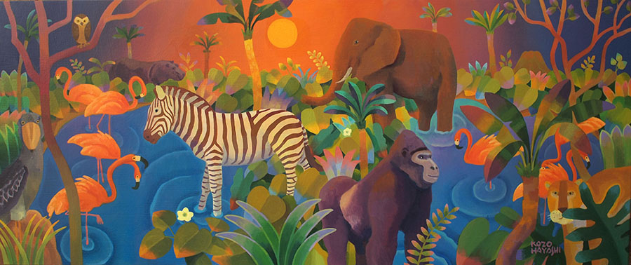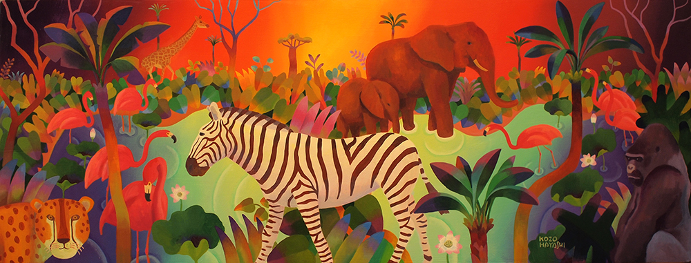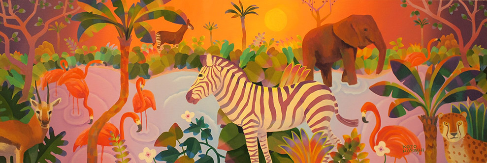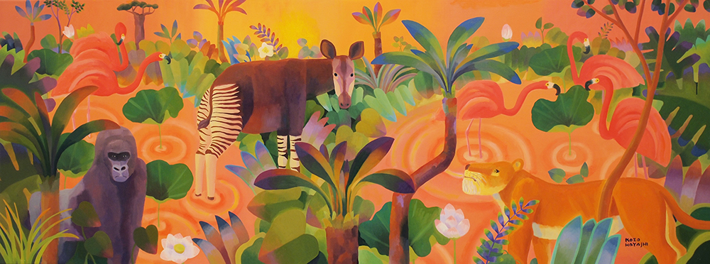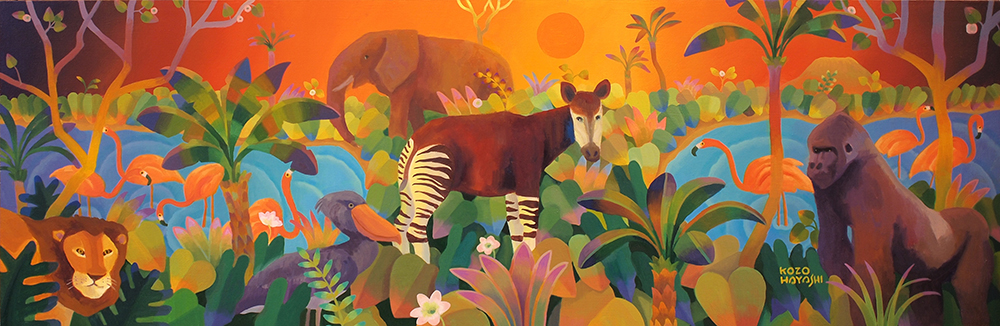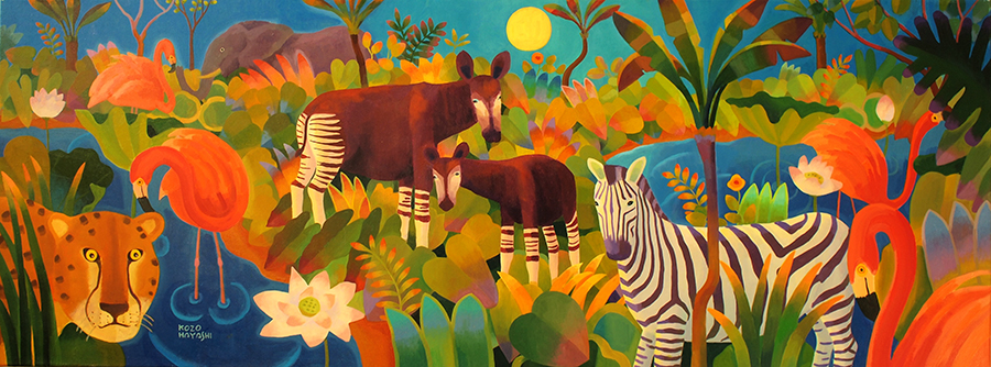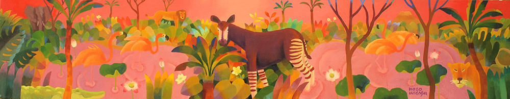 水辺の楽園オカピ 12×60cm 油彩