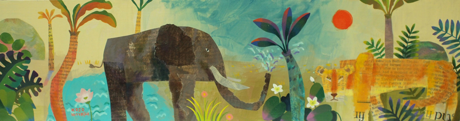 .Elephant & lion 12×45cm Mixmedia